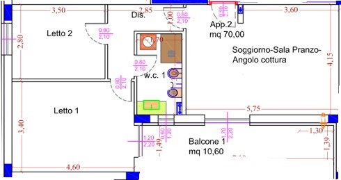 | Immobile - 1° piano | 70 Mq | 70 Mqc |