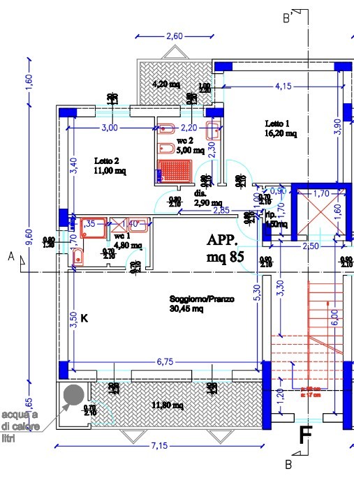 | Balcone - 1° piano | 16 Mq | 5 Mqc |